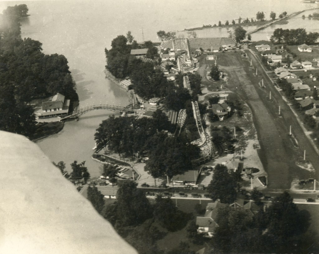 Note the absence of any cars in the parking lot of the park in this undated aerial view.