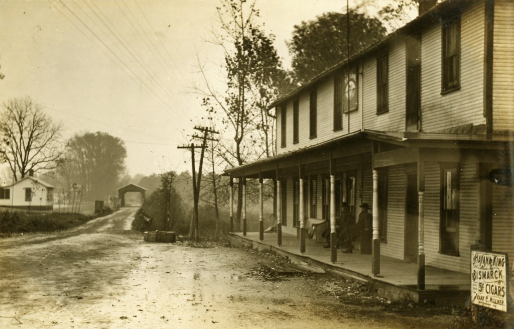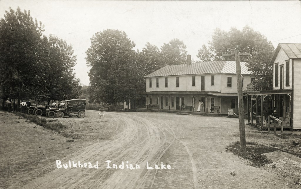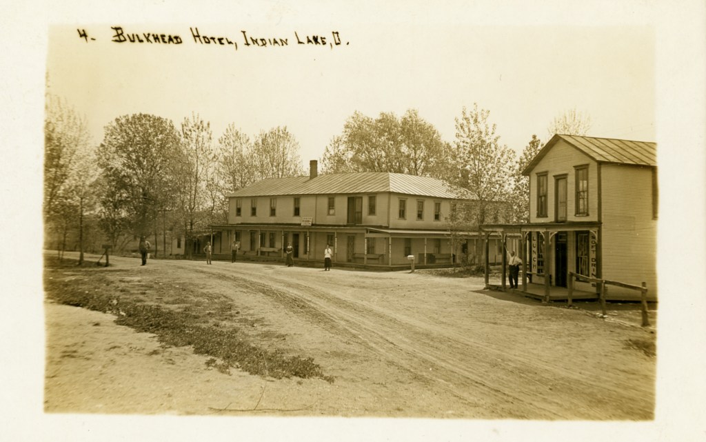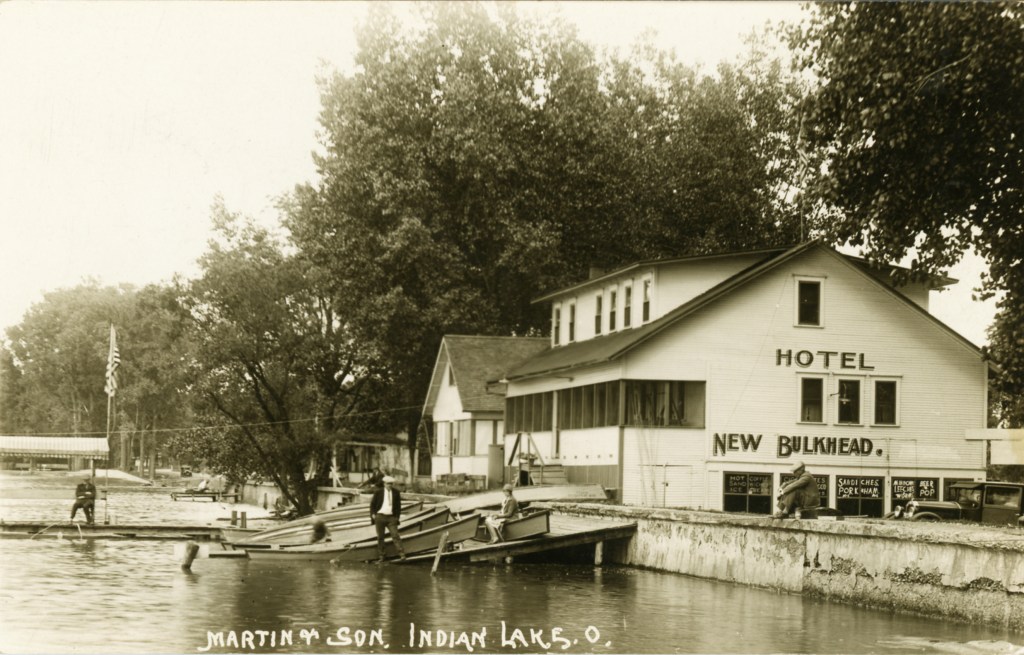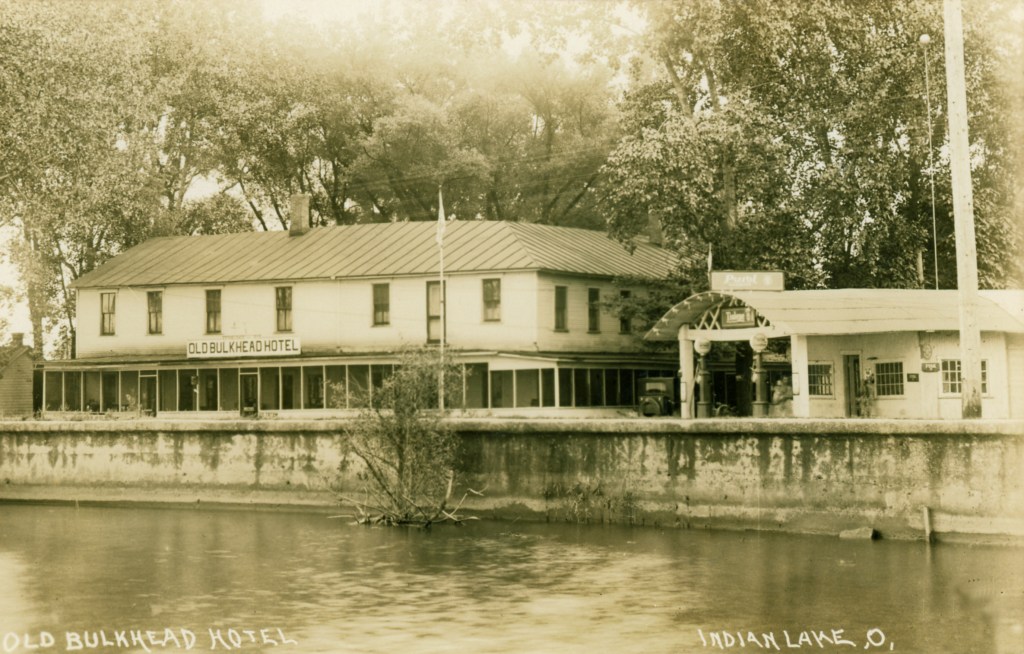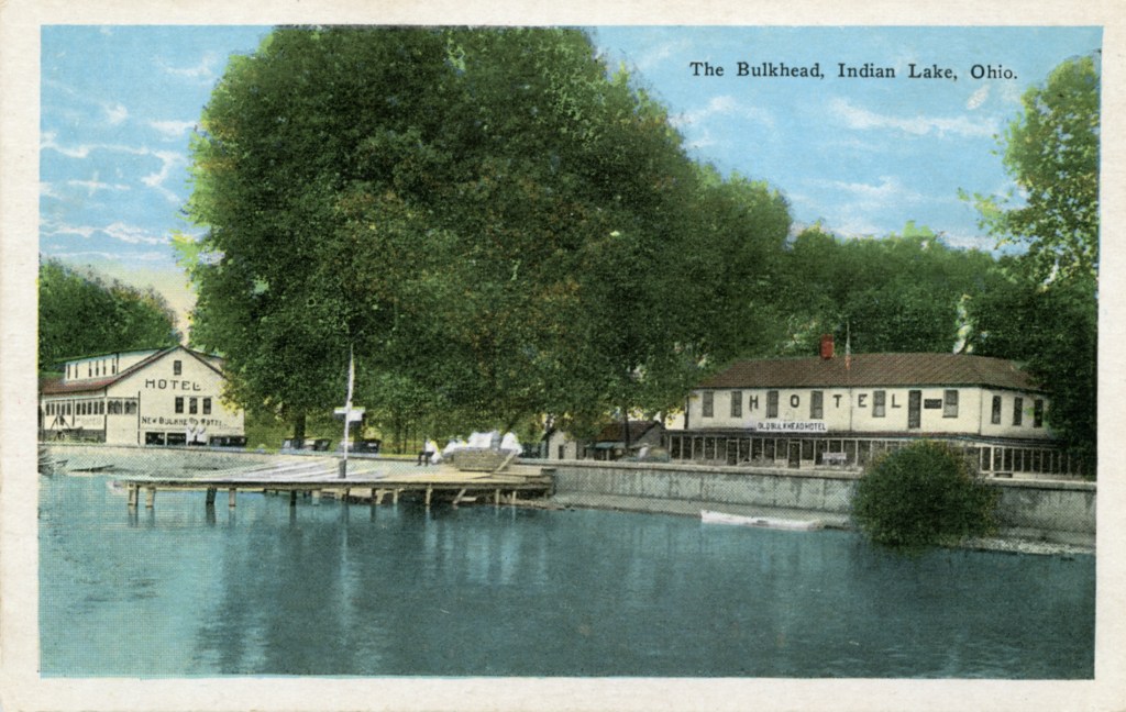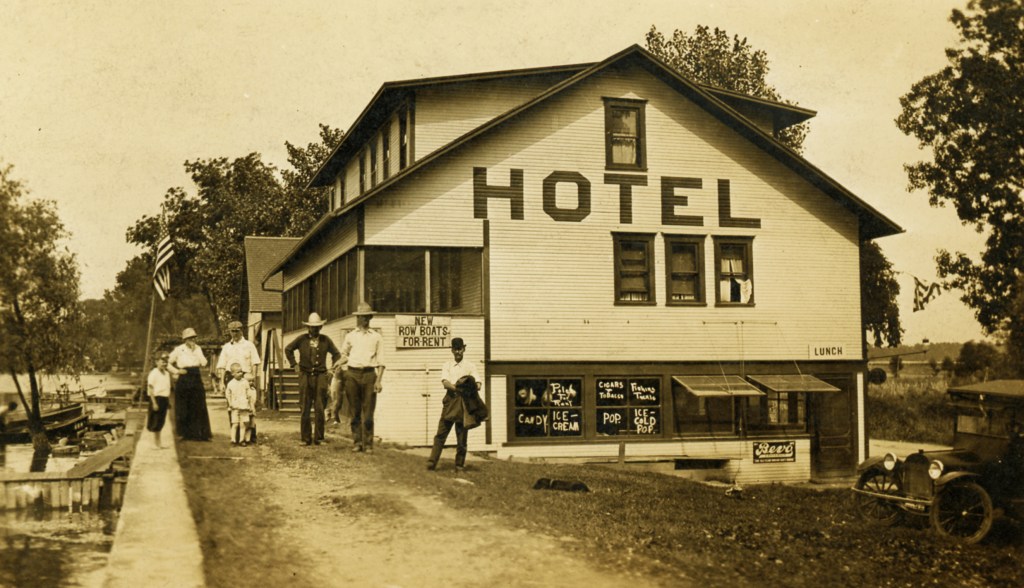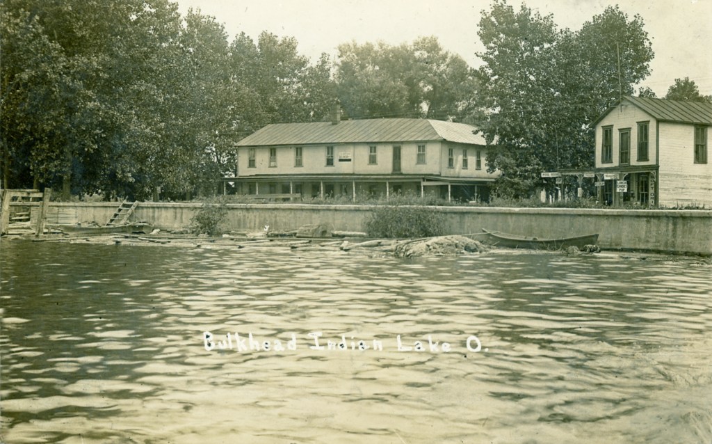 Looking east towards Andrus Landing before (left) and after (right) the shore was fortified with a cement wall. Note the triangular fish gate meant to prevent logs (and people?) from washing down the outlet. The contraption on the shore is for opening and closing the outflow; this is shown better in the postcard below.