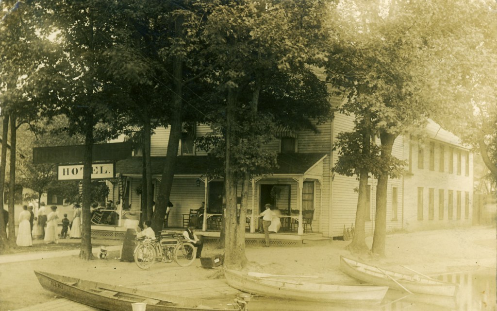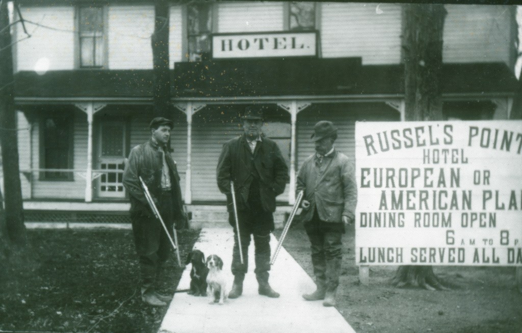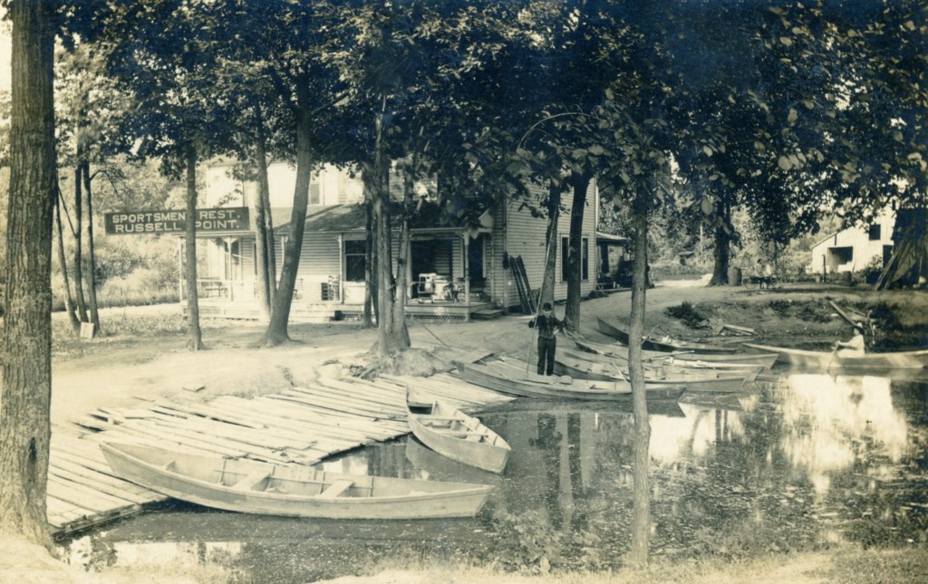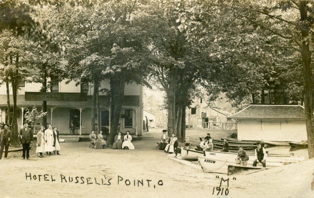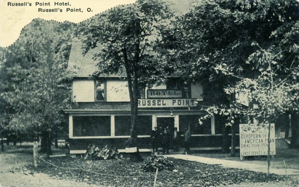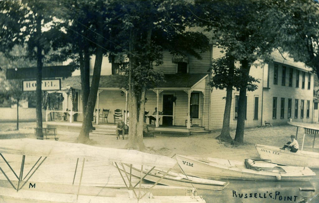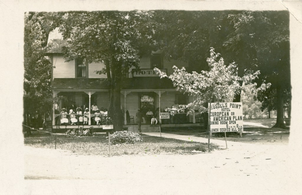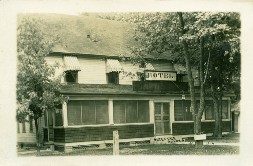 The Hotel Russells Point, previously known as the Sportsmen’s Rest, was on the west side of the harbor, at the site of John Russell’s home. By the time John Russell moved his family there were a dozen families living in the community which was named Russells Point, in honor of its first resident.