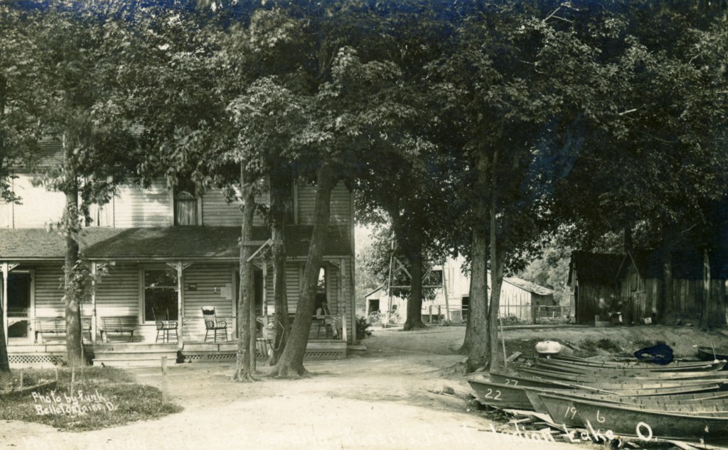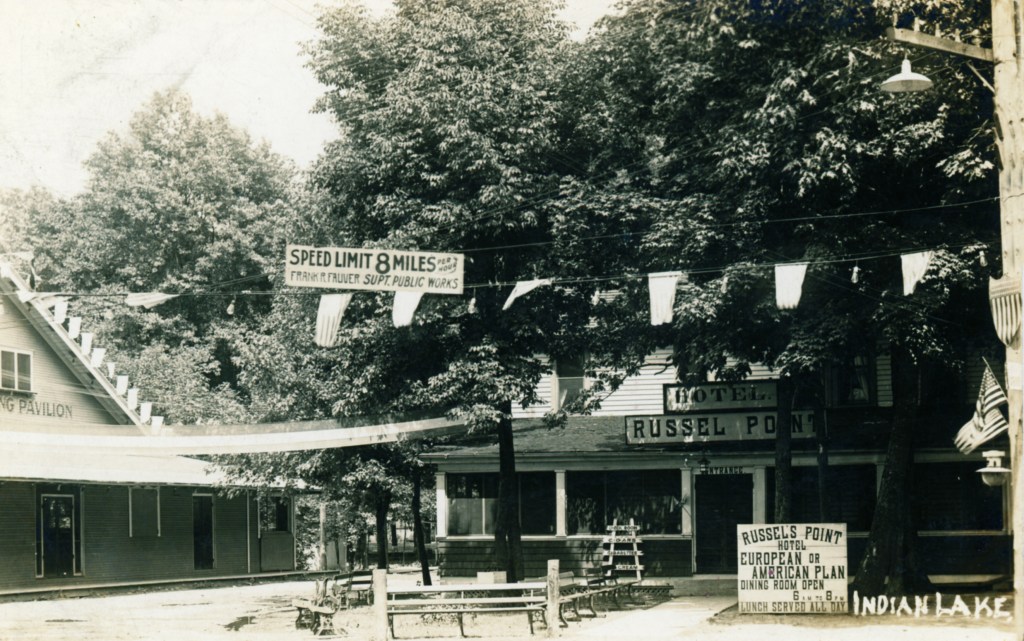 In the spring of 1898, a bill to convert the Lewistown Reservoir into a public park was passed by the state senate and the Indian Lake State Park was established. This boosted the number of visitors to the lake and by the beginning of the twentieth century, the harbor of Russells Point had become a focal point of leisure activity. On the west side of the harbor, the grounds of the existing hotel were expanded to include a boat landing and boat rental, owned by Lafe McElroy. Morris Bundy bought the McElroy property in the early years of the twentieth century and built a few more cottages on what is now Wilgus Street.