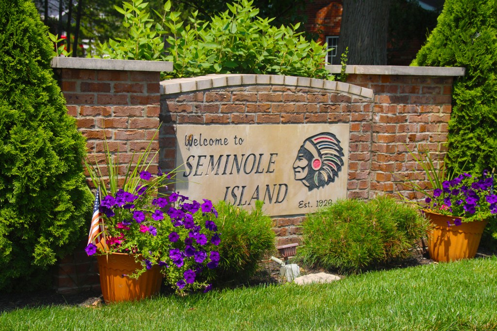 Some of the original cabins on Seminole Island. The yellow one has since been razed.