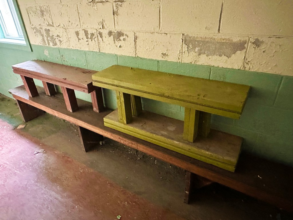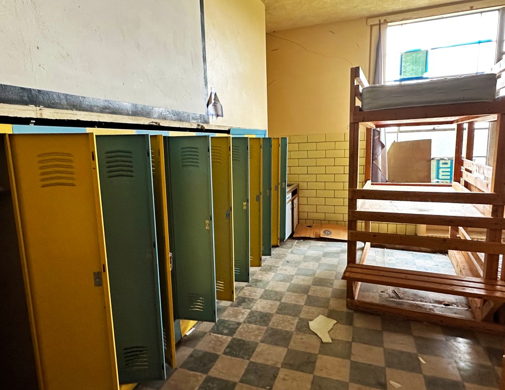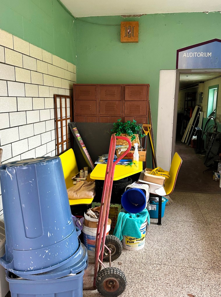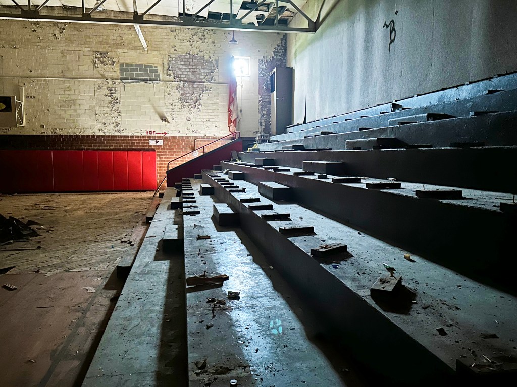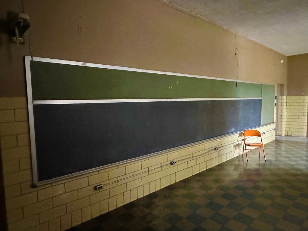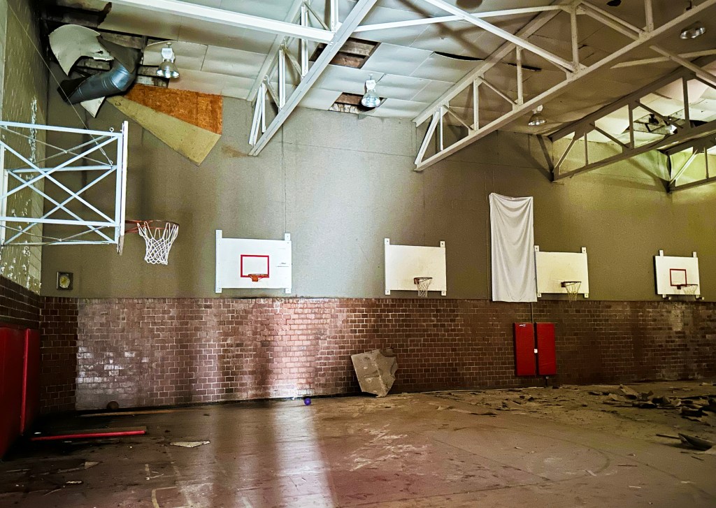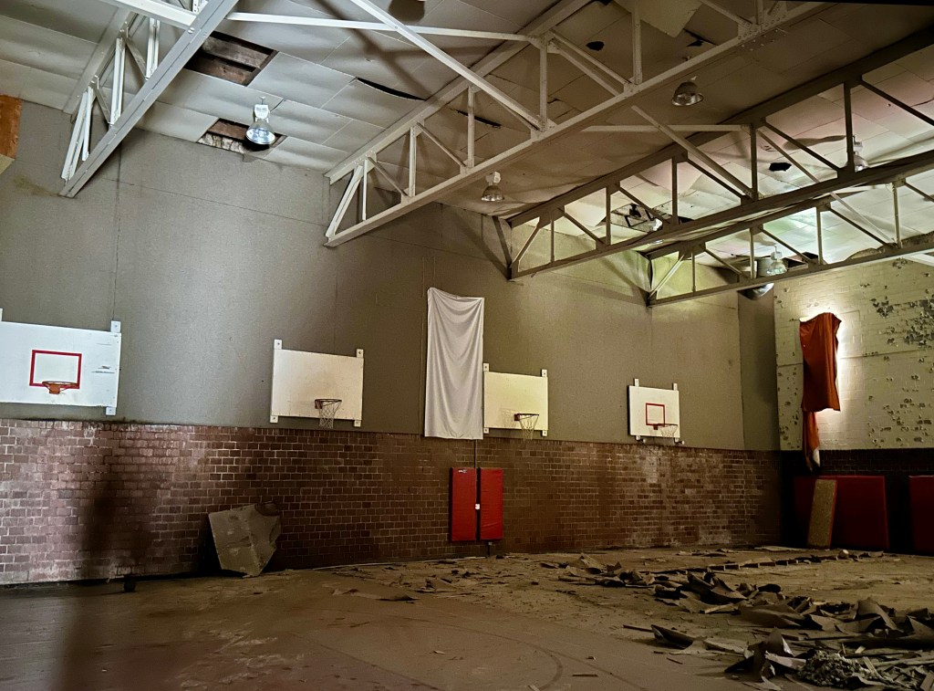 Photographs shown below are from the west wing of the school, and from the gymnasium. This part of the school building has been demolished.