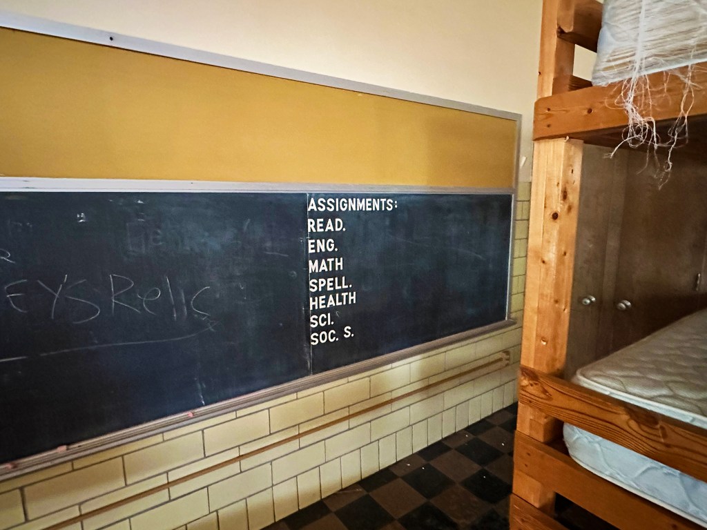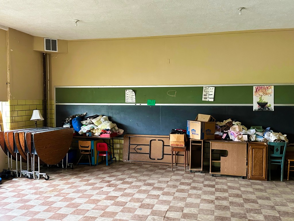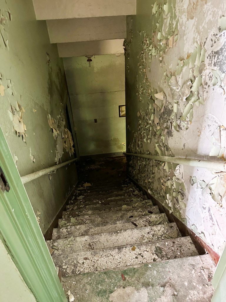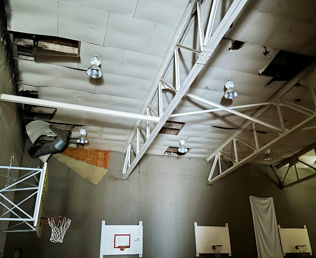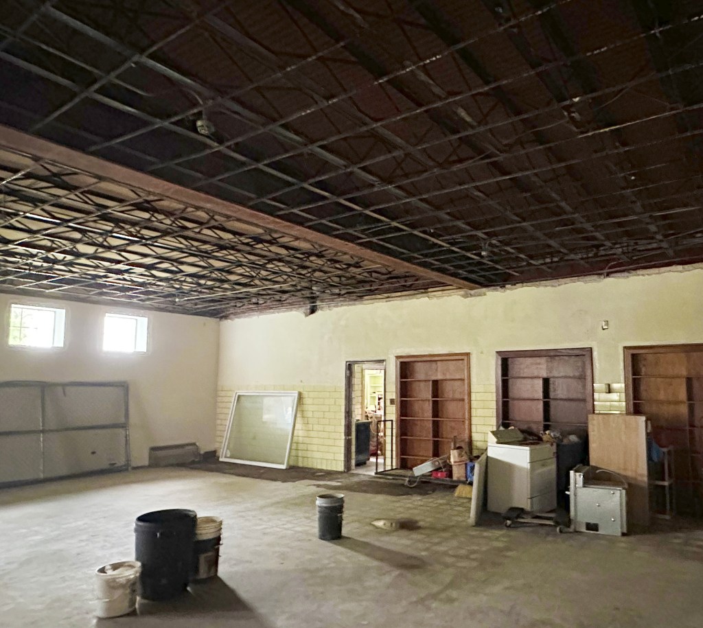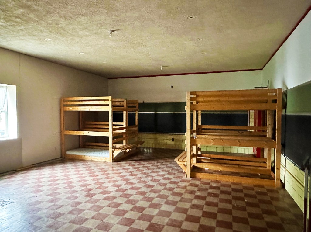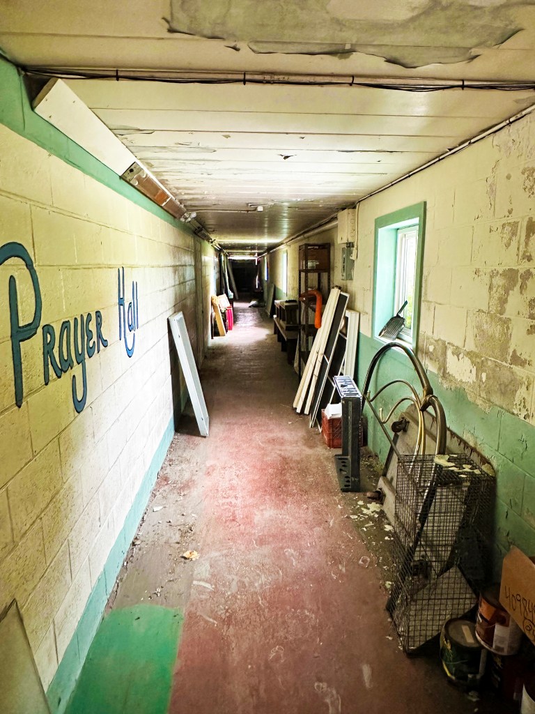 Photographs shown below are from the west wing of the school, and from the gymnasium. This part of the school building has been demolished.