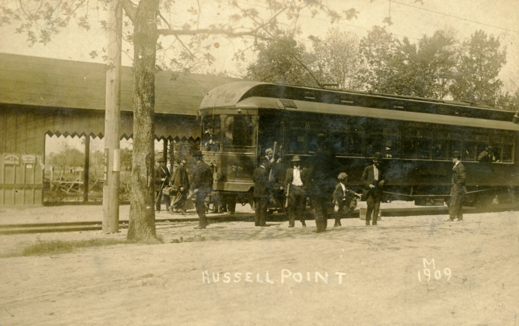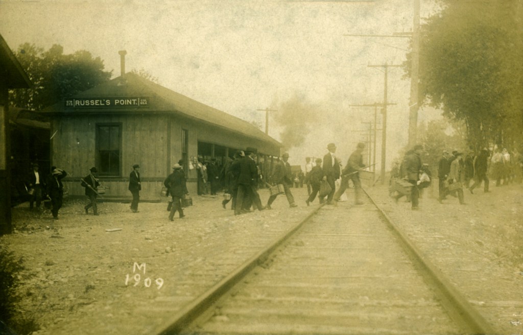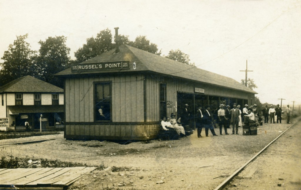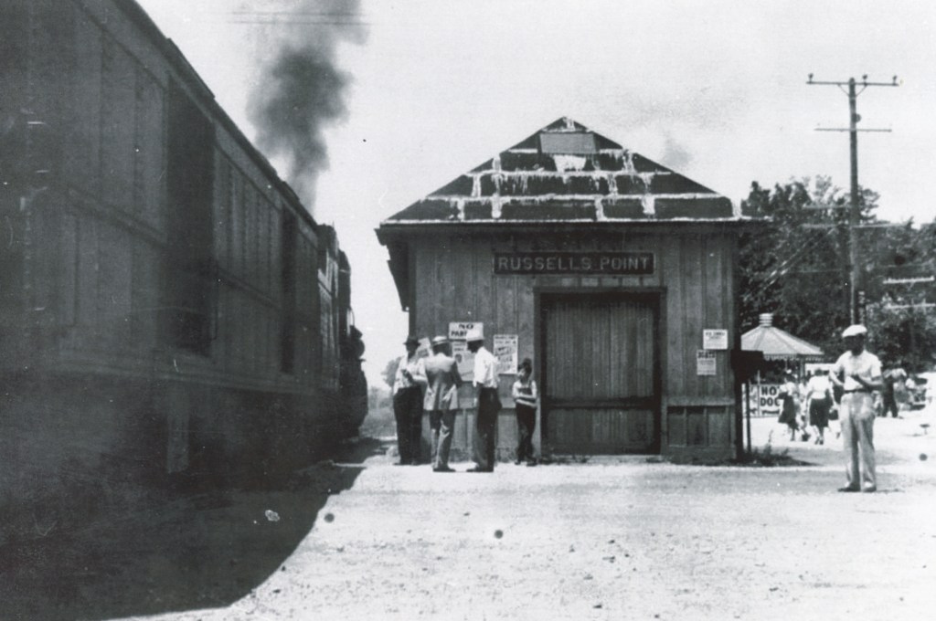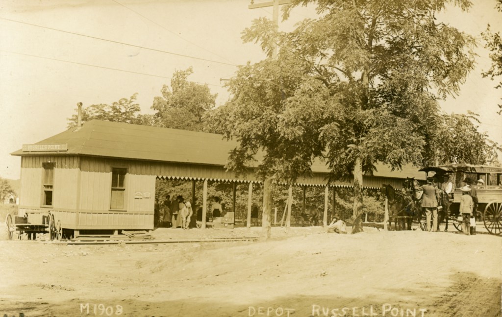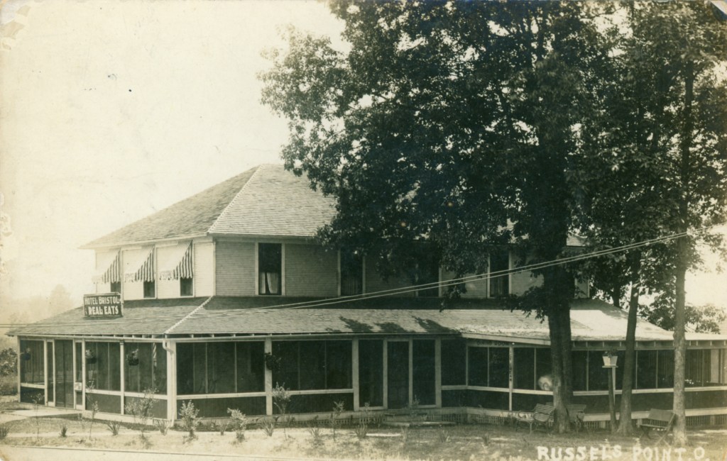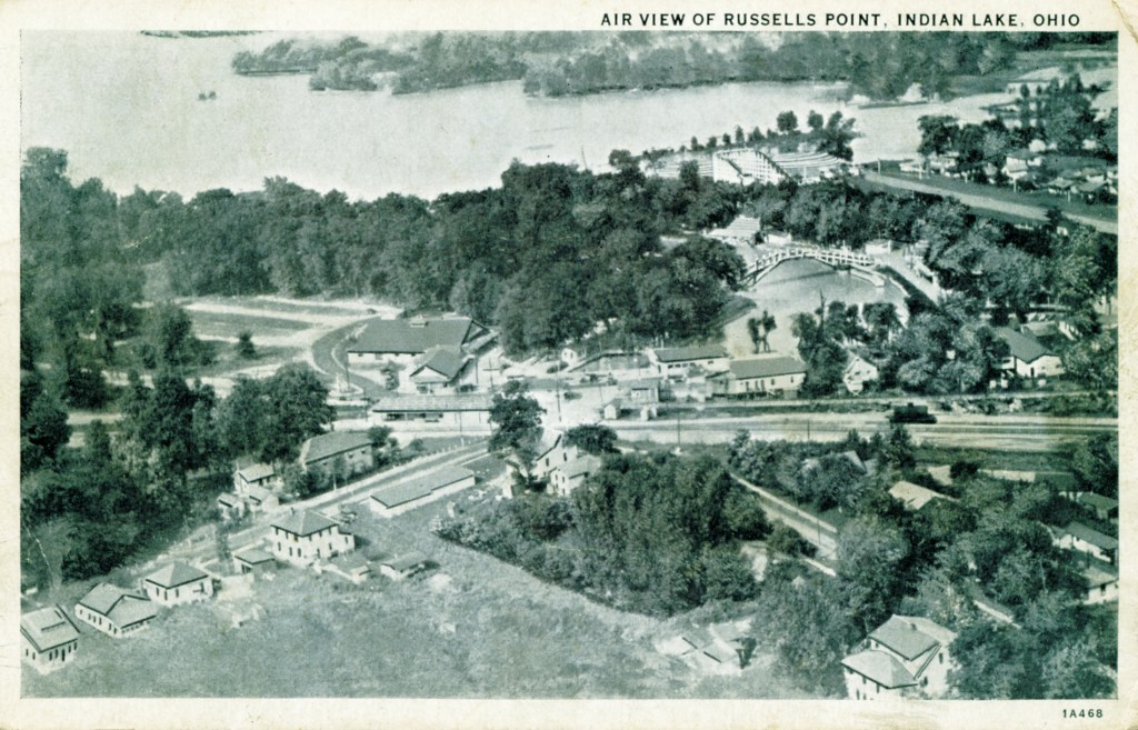 Aerial view dated 1932 looking northward at what used to be the center of Russells Point.