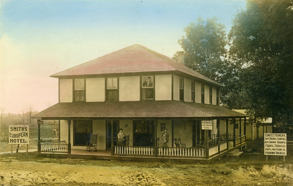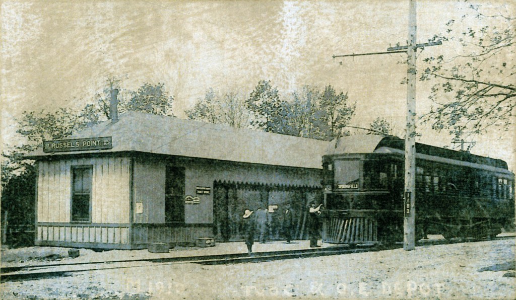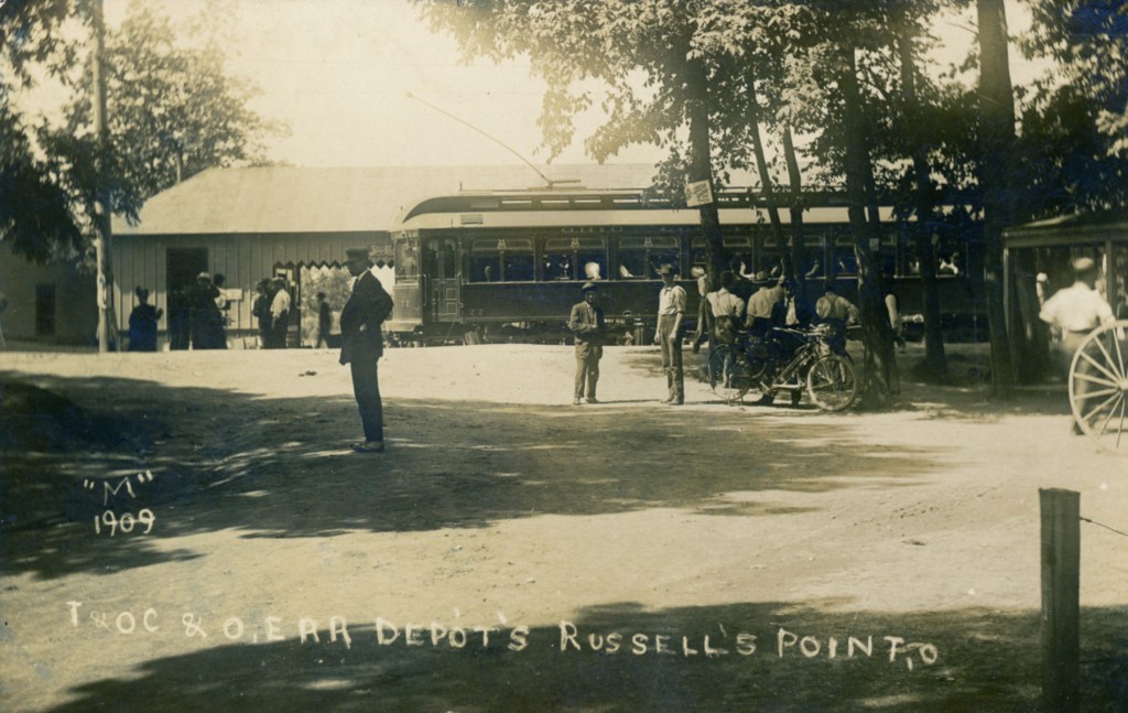 Looking west towards Lakeview. The interurban electric line was on the right and the T & OC line on the left of the station. The building in the background is the Smith Hotel, later called the Bristol Hotel.