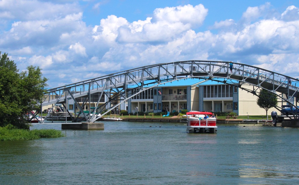 At 19’6″ tall, Our Lady of Fatima Shrine is one of the tallest statues of the Virgin Mary in the U.S. Counting the concrete pedestal the monument is 43′ tall and was dedicated in August 1964. It was commissioned by George Quatman, owner of the Amusement Park at the time and located near the entrance to the harbor.
