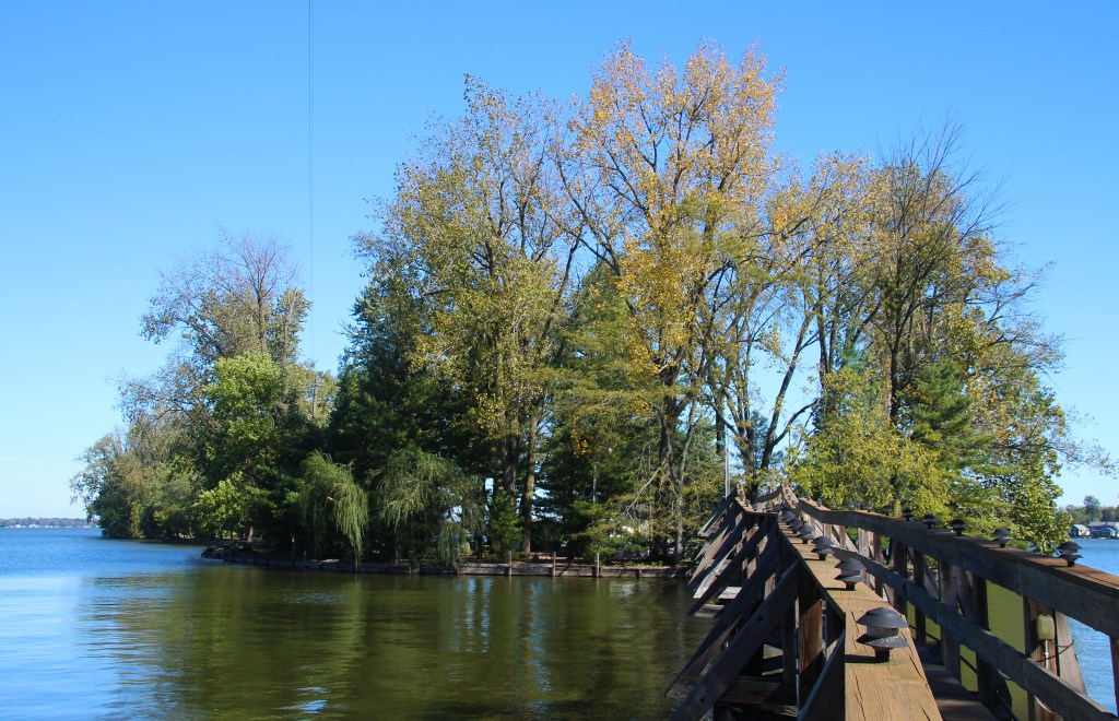 Footbridge connecting Treasure Island to Wilgus Street on the mainland.