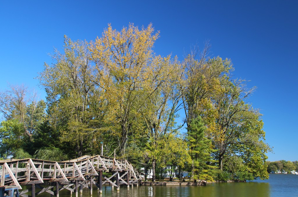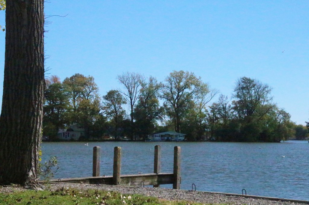 Looking east towards Treasure Island. This photograph was taken from Paradise Island, which used to be a real island with rental cottages. It was connected to the mainland after a new seawall was built and Dyke Road became distanced from the lake.
